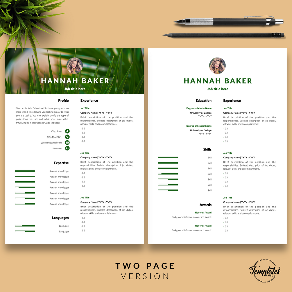 Creative and Modern Resume Template perfect for job positions as Safari Assistant, Biologist, or Research Assistant. CV Templates editable with Microsoft Word & Apple Pages that include US Letter Size Files and A4 Size Files; One, Two, and Three Page Version, Cover Letter Template, References Letter Template, Cover Letter with References Template, Fonts, Icon Set + Instructions Guide for Resume Design + Self-Knowledge and Development Questionnaire. Curriculum Vitae Instant Download.