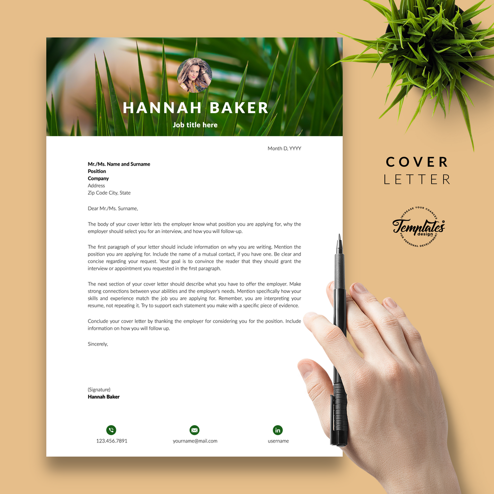 "Hannah Baker" Creative Resume CV Template for Word & Pages / US Letter & A4 Files + 1, 2, & 3 Page Resume Version + Cover Letter + References + Cover Letter with References + Fonts + Icons + Resume Writing Guide/Tips + Bonus / Instant Download