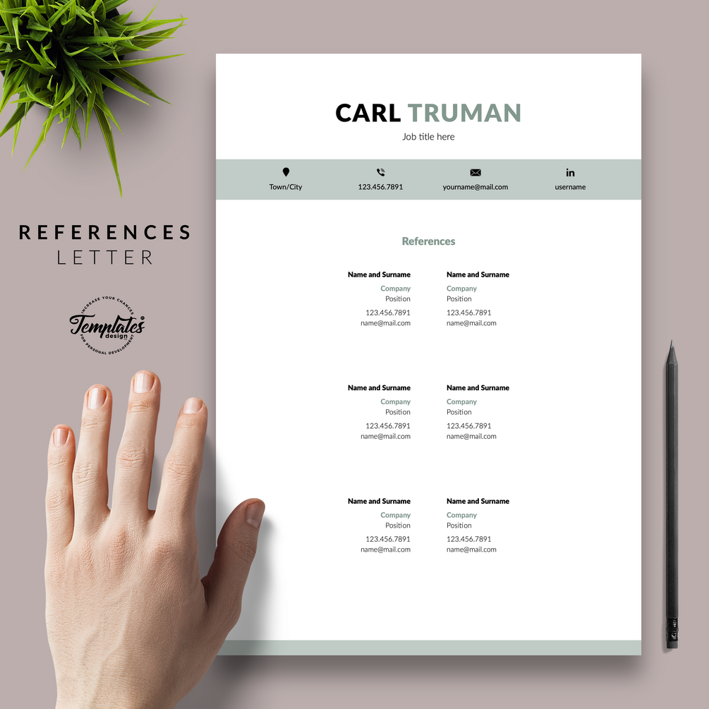 “Carl Truman” Modern Resume CV Template for Word & Pages / US Letter & A4 Files + 1, 2, & 3 Page Resume Version + Cover Letter + References + Cover Letter with References + Fonts + Icons + Resume Writing Guide/Tips + Bonus / Instant Download