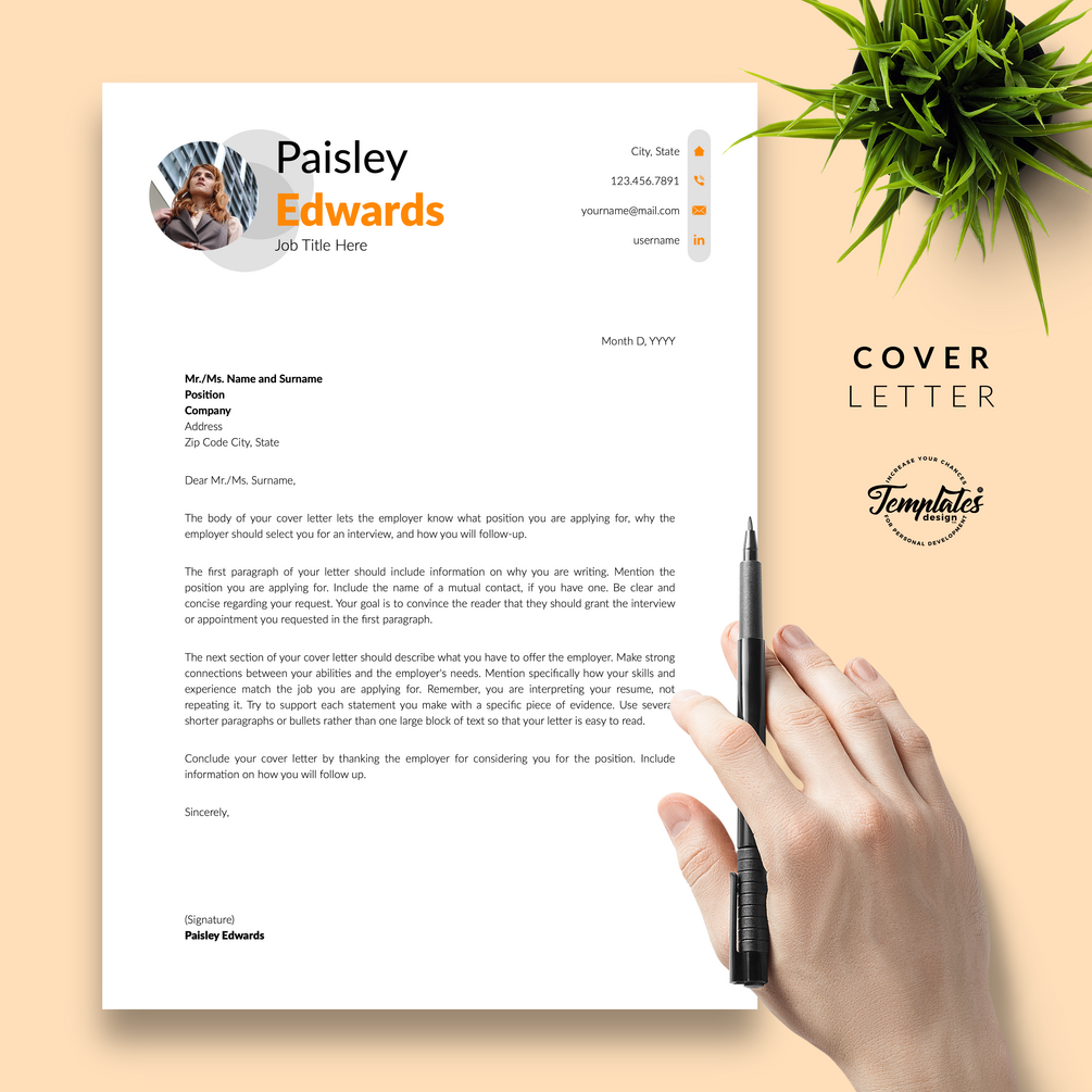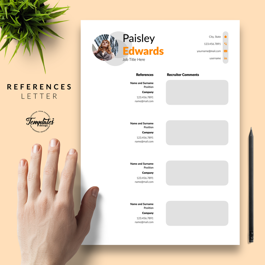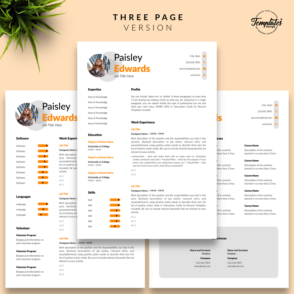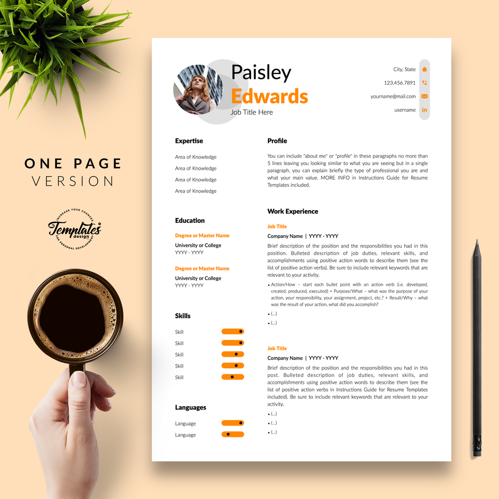 "Paisley Edwards" Modern Resume CV Template for Word & Pages / US Letter & A4 Files + 1, 2, & 3 Page Resume Version + Cover Letter + References + Cover Letter with References + Fonts + Icons + Resume Writing Guide/Tips + Bonus / Instant Download