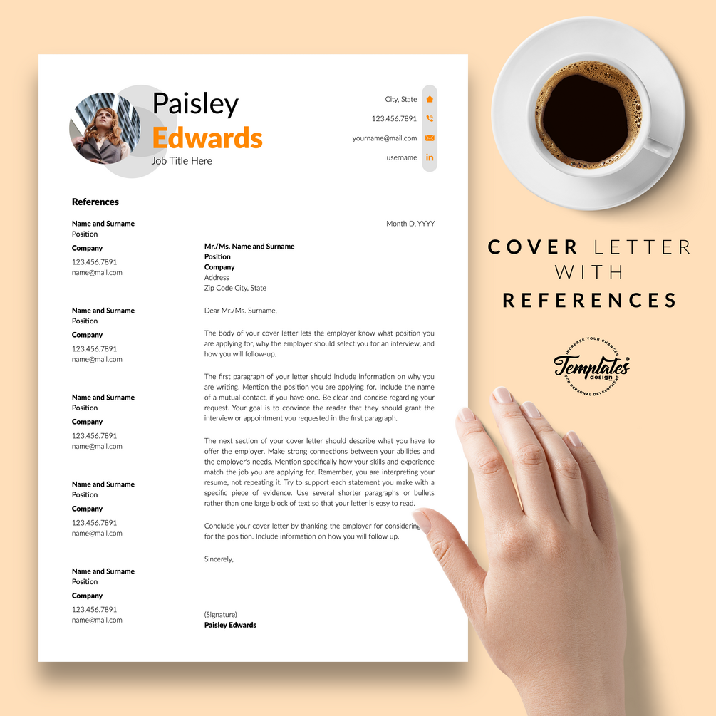 • Cover Letter with References Template for Microsoft Word (.docx).