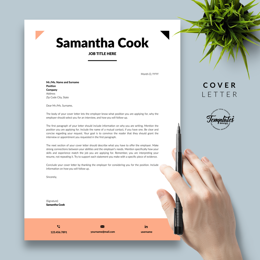 "Samantha Cook" Modern Resume CV Template for Word & Pages / US Letter & A4 Files + 1, 2, & 3 Page Resume Version + Cover Letter + References + Cover Letter with References + Fonts + Icons + Resume Writing Guide/Tips + Bonus / Instant Download
