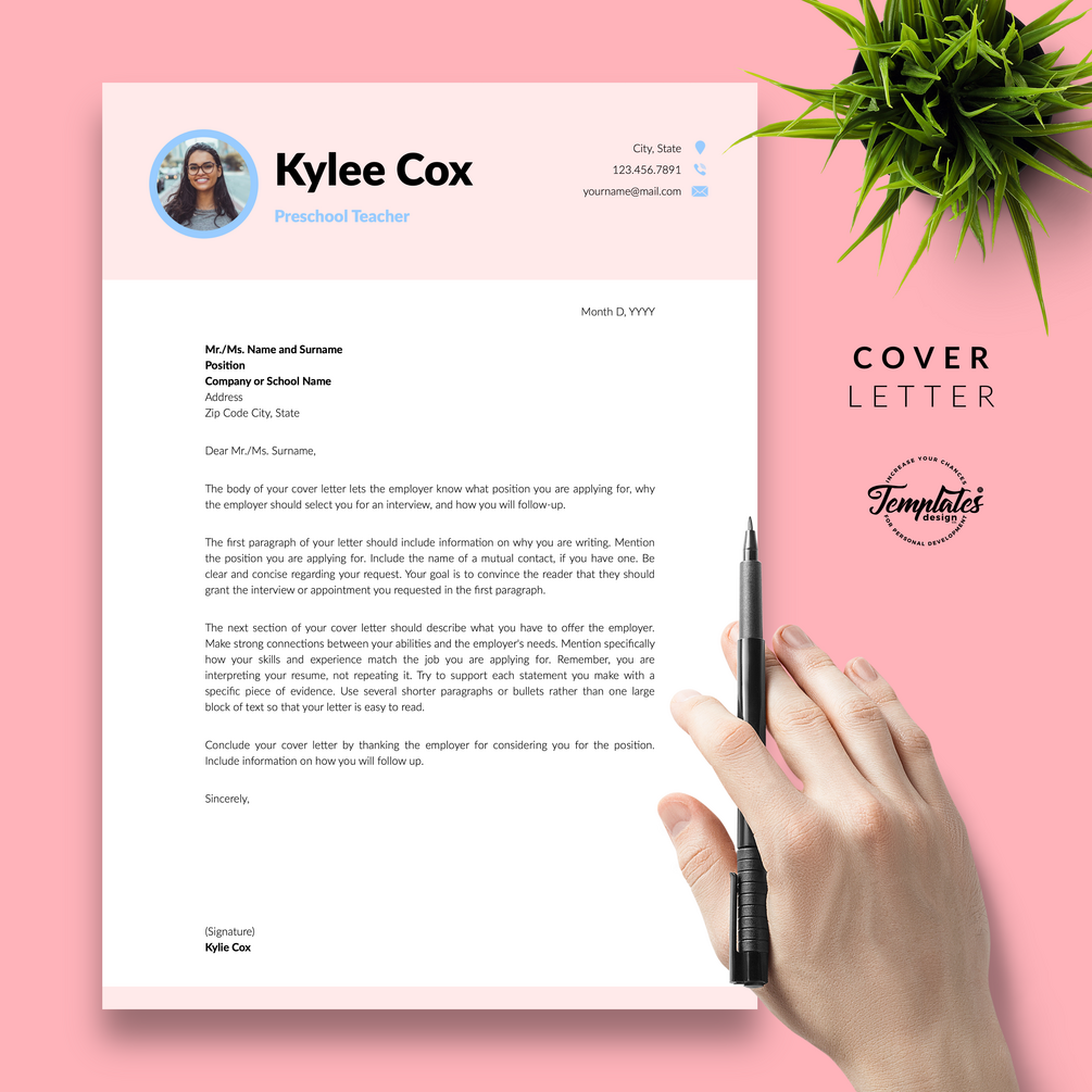 “Kylie Cox” Teacher Resume CV Template for Word & Pages / US Letter & A4 Files + 1, 2, & 3 Page Resume Version + Cover Letter + References + Cover Letter with References + Fonts + Icons + Resume Writing Guide/Tips + Bonus / Instant Download